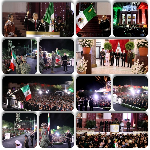 ¡Viva la Independencia Nacional!, ¡Vivan las heroínas y héroes que nos dieron patria y libertad!, ¡Viva Miguel Hidalgo y Costilla!, ¡Viva José María Morelos!, ¡Viva Josefa Ortiz de Domínguez!, ¡Viva Ignacio Allende!, ¡Viva Leona Vicario!, ¡Viva Vicente Guerrero!, ¡Viva Mariano Matamoros!, ¡Vivan los independentistas tamaulipecos!, ¡Viva Isadora Ovalle!, ¡Viva Felipe de la Garza!, ¡Viva Bernardo Gómez de Lara!, ¡Viva la honestidad y la justicia!, ¡Vivan nuestras y nuestros hermanos y hermanas migrantes!, ¡Viva Tamaulipas!, ¡Viva Tamaulipas!, ¡Viva México!, ¡Que viva México! ¡Que viva México!”.