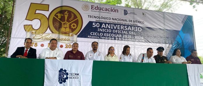 ALTAMIRA, TAM., 18 septiembre 2025.- El Instituto Tecnológico de Altamira conmemoró 50 años de formar profesionistas en Tamaulipas, con una ceremonia presidida por su directora, Cecilia Rocha Felizardo, acompañada de autoridades educativas, docentes, estudiantes y egresados que han formado parte de la historia de esta institución.