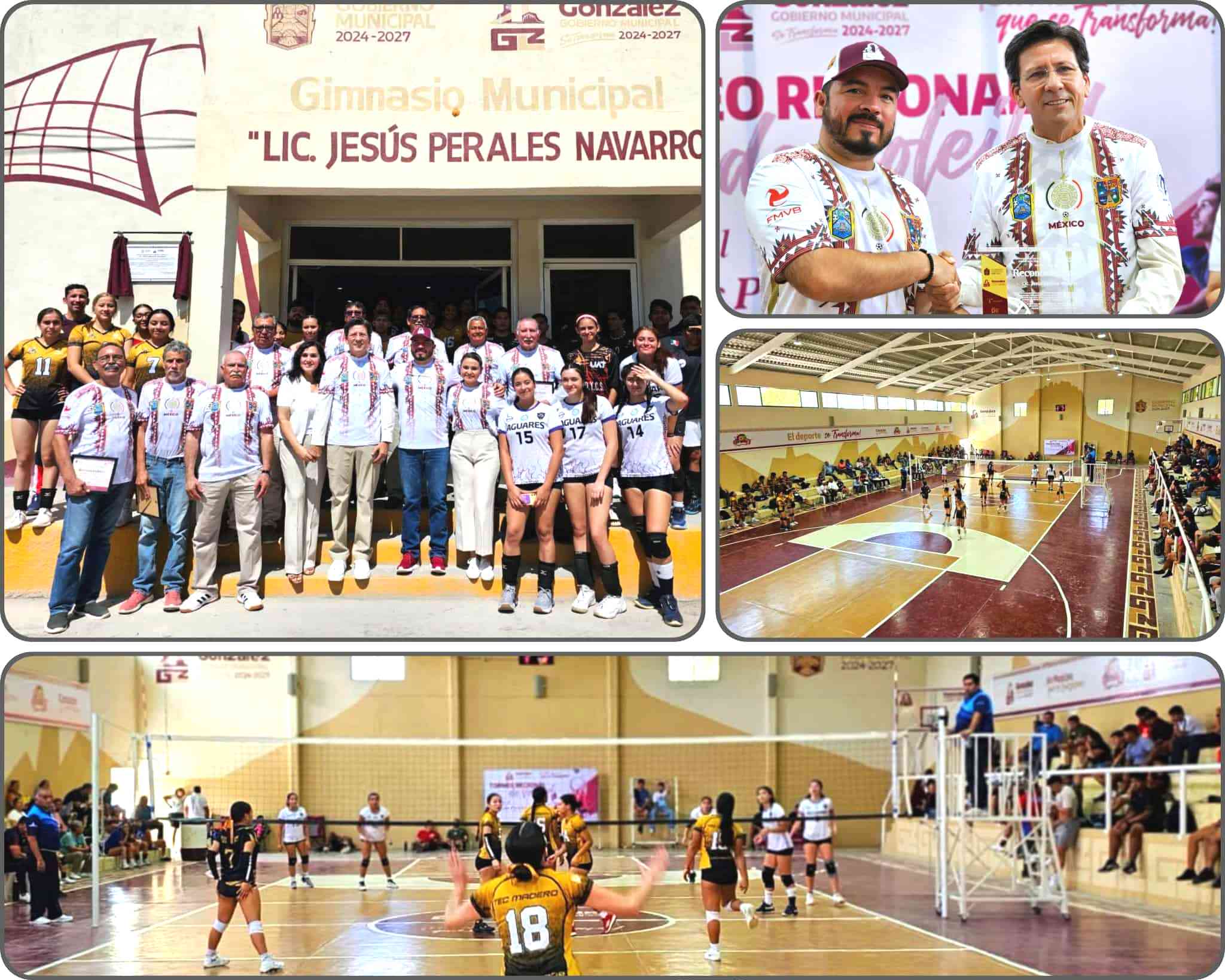 González, Tamaulipas; 5 de Octubre de 2025.- En un acto que honra el esfuerzo, la trayectoria y el profundo sentido de pertenencia, el Gobierno Municipal de González, encabezado por el Dr. Miguel Alejandro Zúñiga Rodríguez, develó la placa que nombra oficialmente al remozado Gimnasio Municipal como “Lic. Jesús Perales Navarro”, en honor al destacado gonzalense que hoy preside la Federación Mexicana de Voleibol (FMVB) y es Vicepresidente de la Confederación de Norteamérica, Centroamérica y el Caribe de Voleibol (NORCECA).