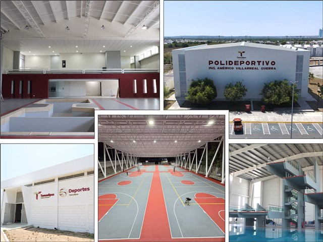 Subrayó entre las obras más destacadas; la rehabilitación de los gimnasios Enrique Franklin Chanes “Las Liebres” en Río Bravo; “Manuel Raga Navarro” de Ciudad Victoria; la construcción de la techumbre en las canchas de básquetbol y rehabilitación de canchas de voleibol en la Unidad Deportiva “Adolfo Ruiz Cortines. Asimismo, la modernización de fosa de clavados y construcción de baños en el Polideportivo “Américo Villarreal Guerra”, además de los trabajos realizados en las áreas de gimnasia y esgrima de la UD Siglo XXI en la capital tamaulipeca.