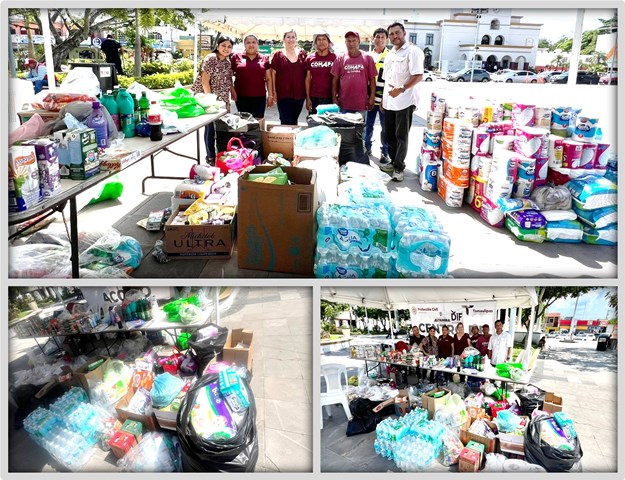 Solidarizándose con las familias del norte de Veracruz que resultaron afectadas por las recientes lluvias torrenciales y el desbordamiento de ríos, el personal de la Comisión Municipal de Agua Potable y Alcantarillado de Altamira participó activamente en la donación de víveres y artículos de limpieza y aseo personal que se destinarán a los damnificados.