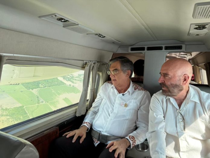 La tarde de este viernes, a bordo del avión “Tláloc” y acompañado por Raúl Quiroga Álvarez, secretario de Recursos Hidráulicos, el ejecutivo tamaulipeco recorrió las márgenes del Pánuco, hasta el municipio de Tamuín, San Luis Potosí, en donde constató las afectaciones a diversas comunidades rurales a causa del desbordamiento del río.