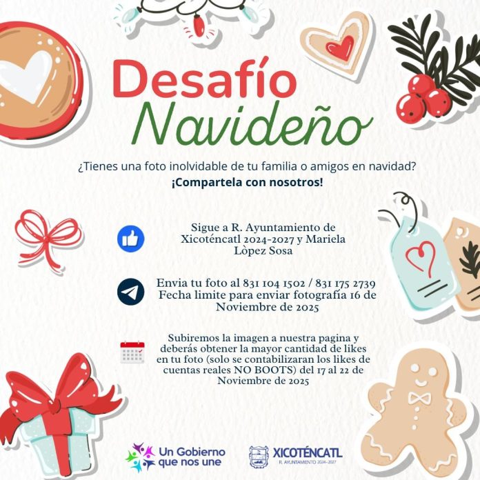 Quienes deseen participar deberán enviar una fotografía inolvidable de su familia o amigos en Navidad al número 831 104 1502, antes del 16 de noviembre de 2025, además de seguir las páginas oficiales del R. Ayuntamiento de Xicoténcatl 2024-2027 y de Mariela López Sosa.