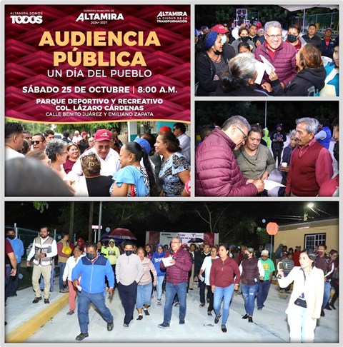 ALTAMIRA, TAM., 22 octubre 2025.- Con el objetivo de fortalecer el diálogo directo con la ciudadanía y atender de manera puntual sus necesidades, el presidente municipal de Altamira, Dr. Armando Martínez Manríquez, anunció el inicio de las audiencias públicas “Un Día del Pueblo”, una nueva estrategia de atención ciudadana que complementará las ya tradicionales audiencias matutinas.