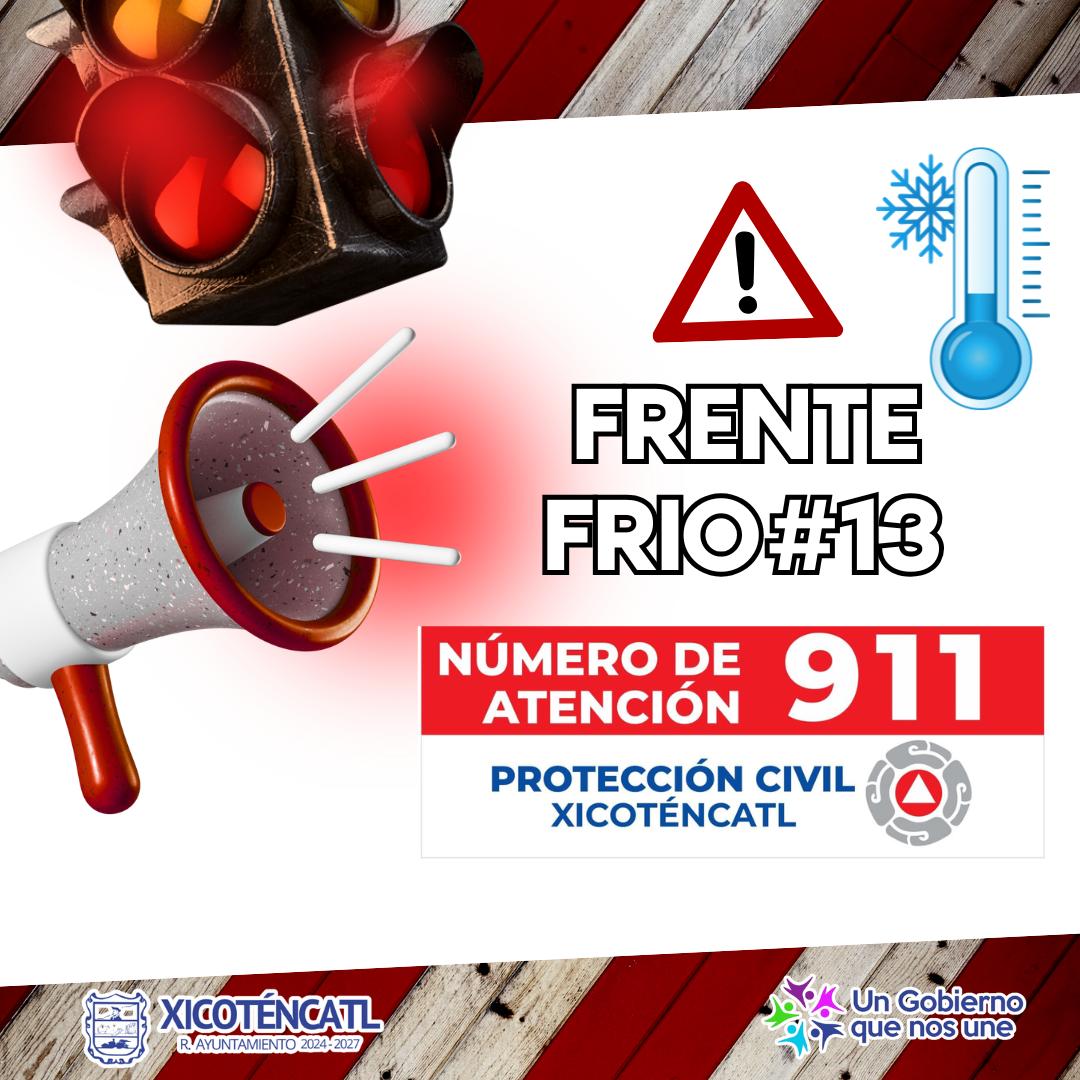 Xicoténcatl, Tam. — La Coordinación Municipal de Protección Civil informó que el Frente Frío No. 13 ingresará al estado este domingo, provocando un descenso moderado en las temperaturas en la zona cañera.