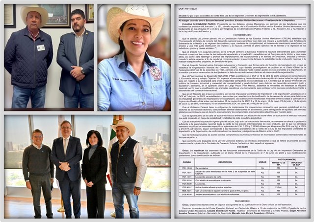 El decreto modifica las fracciones arancelarias de la Tarifa de la Ley de los Impuestos Generales de Importación y de Exportación del azúcar, estableciendo un arancel del 156%. Esta decisión ha sido recibida con beneplácito por los líderes del sector cañero, quienes ven en ella un respaldo importante para la economía de miles de familias que dependen de esta agroindustria.