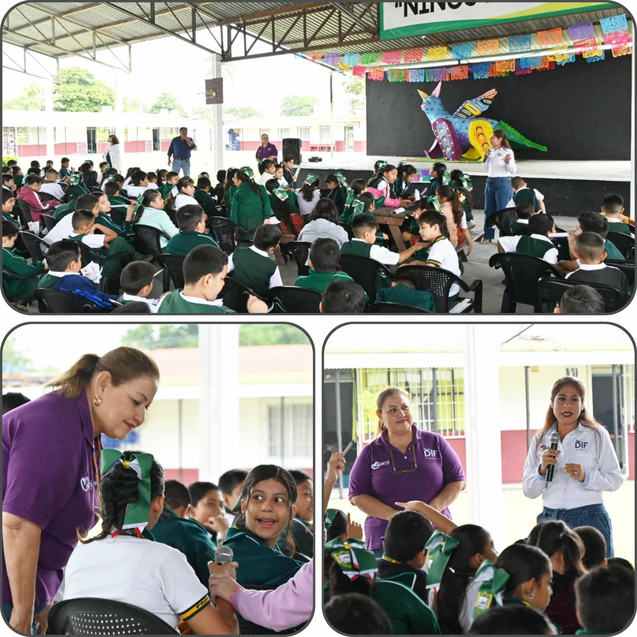 A invitación del Centro Regional de Desarrollo Educativo de la SET y junto a instancias de seguridad y protección civil, el equipo institucional del sistema DIF Mante visitó la primaria “Niños Héroes “, donde la Procuradora Sara González y personal de Trabajo Social y Psicología realizaron dinámicas para que los alumnos razonen y conozcan cada uno de sus derechos para su protección, defensa y cuidado cuándo se vean violentados.