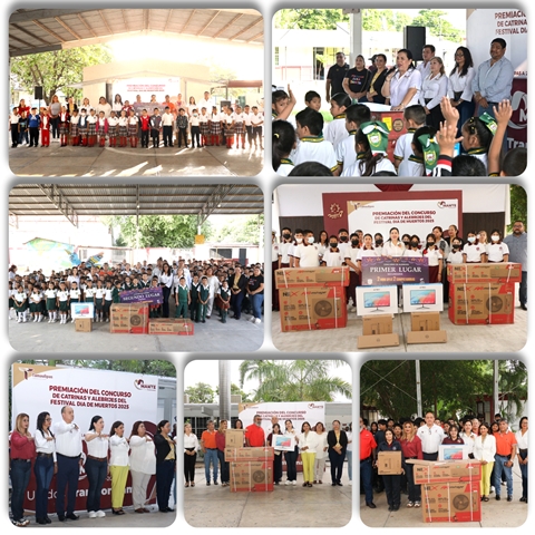 Las escuelas primarias Alberto Carrera Torres, Niños Héroes y las secundarias: Técnica No 7 Dr. Pedro Martínez Noriega y la Secundaria General No 2, Jaime Torres Bodet recibieron esta mañana los premios por su participación en las actividades relativas al Día de Muertos, en donde mostraron creatividad y esfuerzo colectivo.