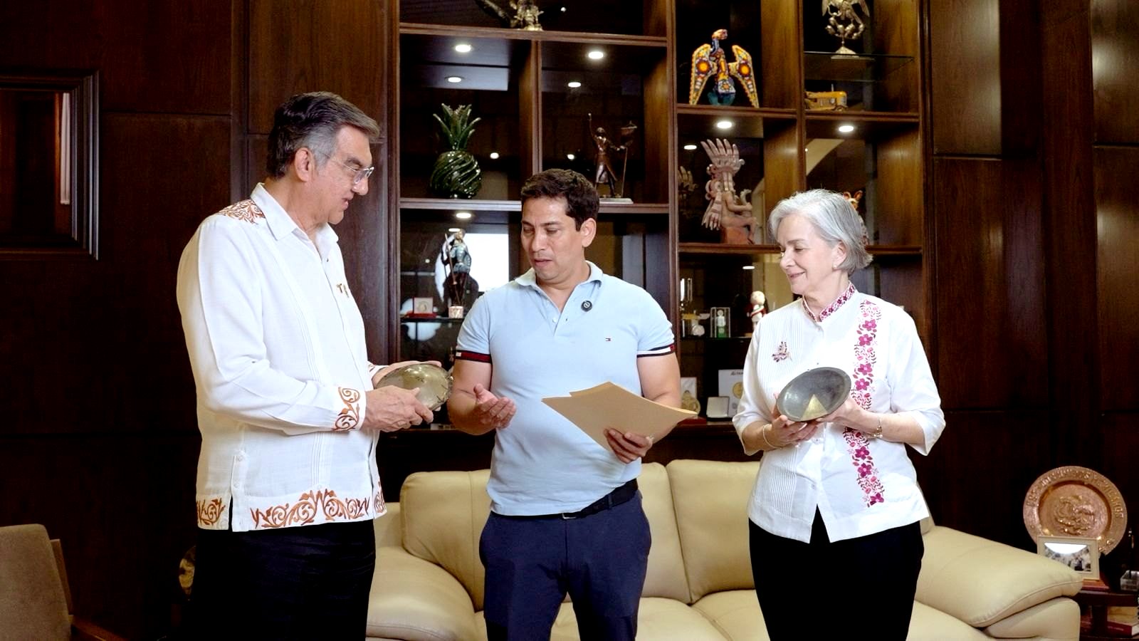 Junto con la doctora María de Villarreal, presidenta del DIF Tamaulipas, el gobernador agradeció las gestiones realizadas ante el Vaticano para lograr la bendición papal de ambas piezas que formarán parte de la escultura de más de 32 metros que se entregará el próximo 12 de diciembre.