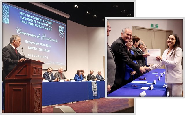 TAMPICO, TAMAULIPAS. – “Somos testigos de nuevas generaciones que por amor a la vida hoy se convierten en doctores y doctoras comprometidos con la salud de las personas, capaces de enfrentar y superar cualquier reto”, señaló el secretario de Salud, Vicente Joel Hernández Navarro, al asistir a la ceremonia de graduación de la generación 2021-2026 de la carrera de médico cirujano del Instituto de Ciencias y Estudios Superiores de Tamaulipas. A.C, de Tampico.