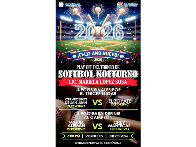 Xicoténcatl, Tam. – Con el objetivo de fortalecer los vínculos comunitarios y fomentar la actividad física en el municipio, la presidenta municipal, Mariela López Sosa, extendió una cordial invitación a toda la ciudadanía para asistir a los encuentros finales del Torneo de Softbol Nocturno 2026.
