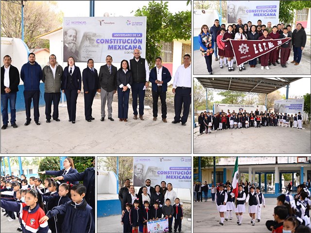 La presidenta municipal de Mariela López Sosa encabezó la ceremonia cívica conmemorativa del Aniversario de la Constitución Mexicana, realizada en la escuela primaria Prof. Moisés Sáenz, en el municipio de Xicoténcatl.