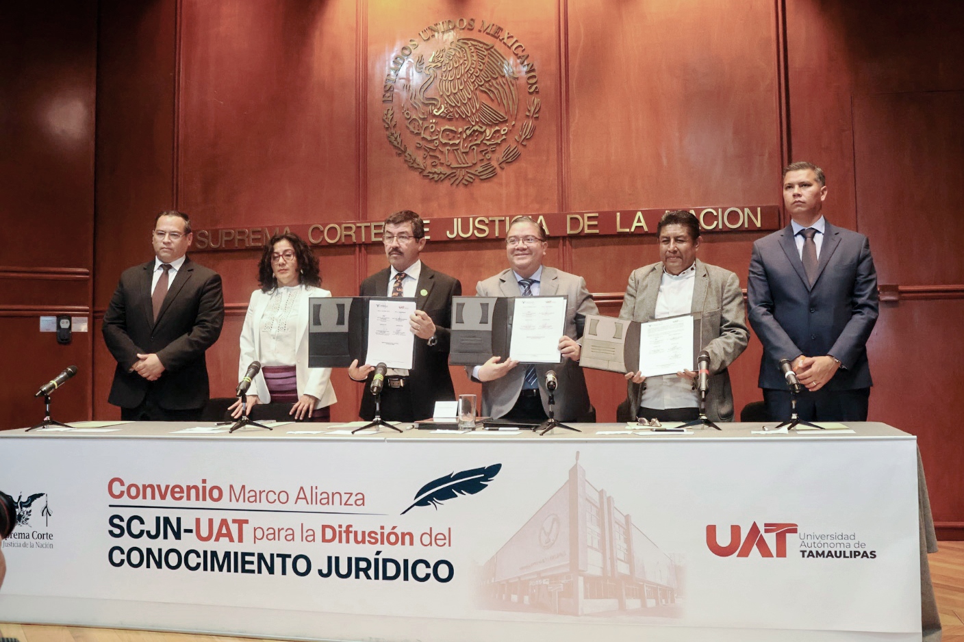 La Universidad Autónoma de Tamaulipas (UAT) y la Suprema Corte de Justicia de la Nación (SCJN) suscribieron el Convenio Marco Alianza SCJN–UAT para la Difusión del Conocimiento Jurídico, así como un convenio específico en materia de servicio social.