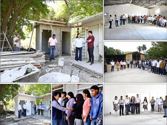 La presidenta municipal Mariela López Sosa encabezó la entrega de nuevas obras en el Telebachillerato Comunitario 030, ubicado en el ejido Segunda Unidad (El Aquiche), del municipio de Xicoténcatl.