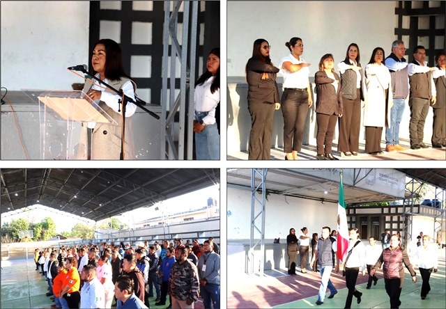 - El alcalde Melchor Budarth Báez y la presidenta del DIF, Martha Uresti, encabezaron la ceremonia para fomentar la identidad nacional entre los servidores públicos.