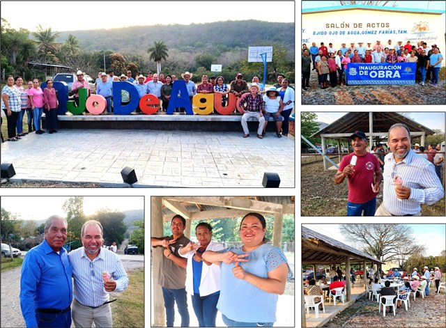 EJIDO OJO DE AGUA. — En un ambiente de fiesta y cercanía con la gente, el alcalde Frank de León encabezó la ceremonia de inauguración de la rehabilitación del salón de actos de esta comunidad, una obra clave para el fortalecimiento del tejido social en el sector rural.
