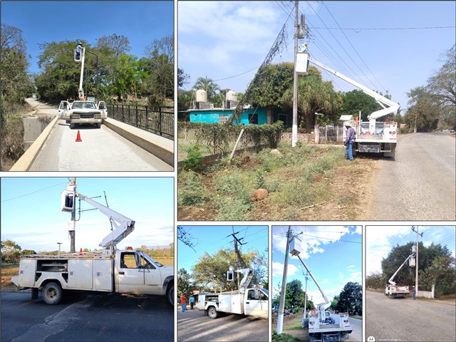 • Por instrucción del alcalde Melchor Budarth Báez, cuadrillas municipales rehabilitaron el alumbrado público en los ejidos El Pensil, Flores Magón y la zona de Puente Españita.