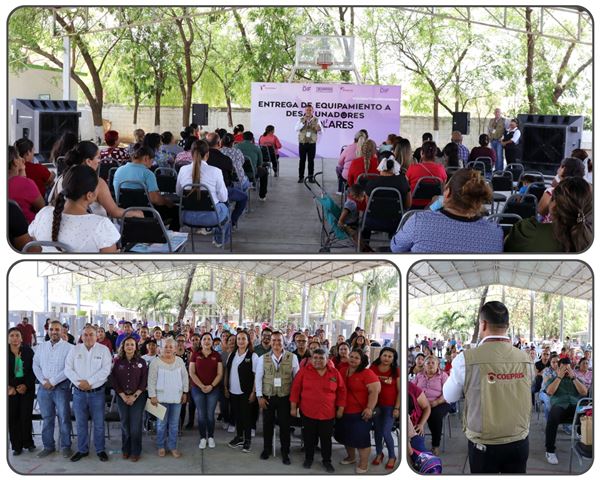Durante la entrega de equipamiento a 31 desayunadores escolares enviados por la Dra. María de Villarreal  Presidenta del Sistema DIF Tamaulipas, el Gobierno Municipal a cargo de Patty Chío fortaleció las acciones con la capacitación  a madres de familia encargadas de la preparación de alimentos.