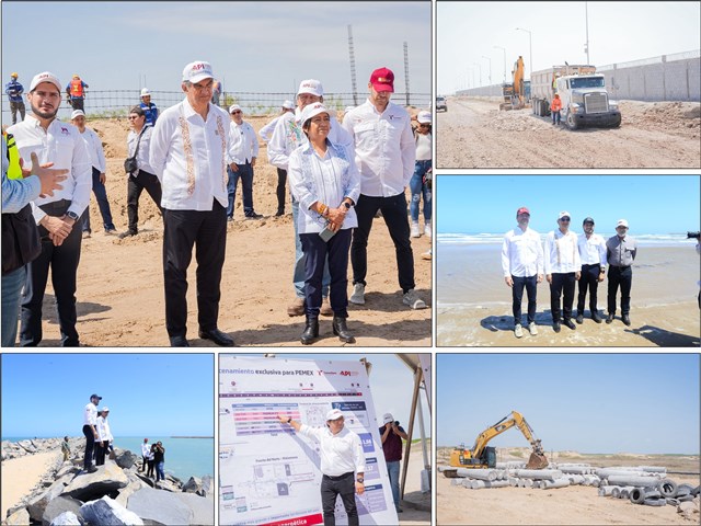 El gobernador y la titular de la Sedatu, junto con el director general de la Comisión Nacional de Vivienda, Rodrigo Chávez Contreras llegaron hasta la zona de las escolleras, donde apreciaron el canal de navegación y conocieron la zona para el desarrollo de la Terminal de Almacenamiento de Pemex, que se convertiría en la más grande e importante del noreste de México.