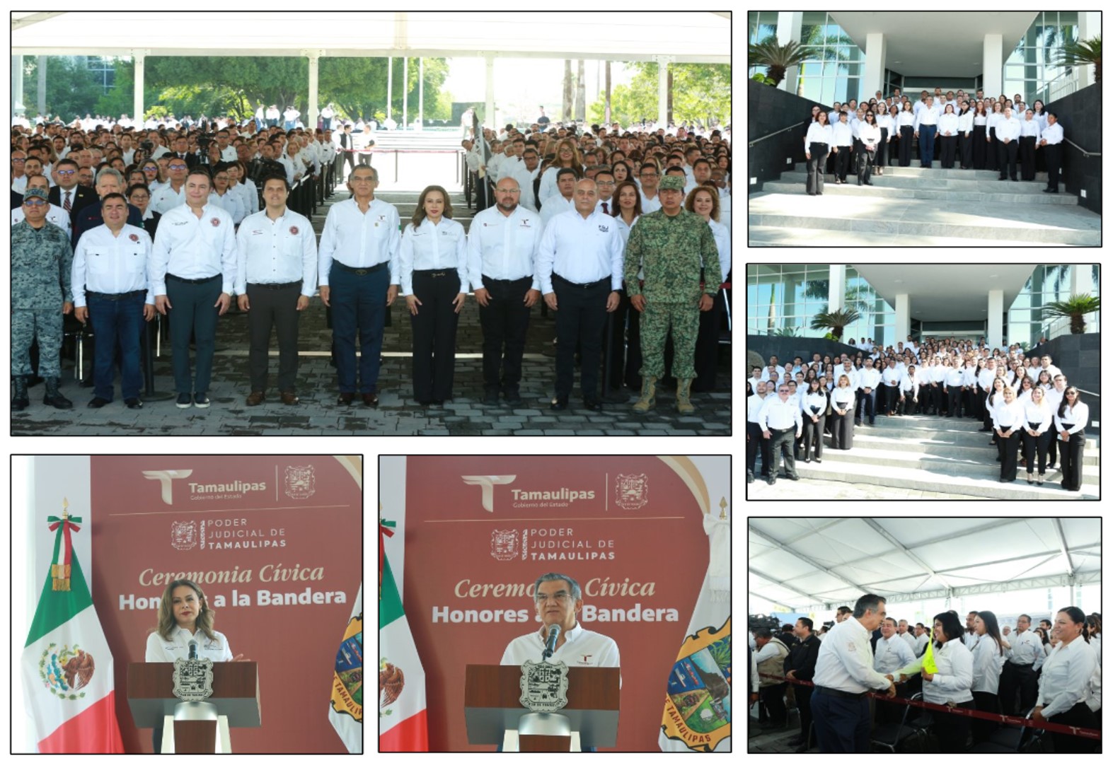 Al presidir la ceremonia de honores en la explanada del Supremo Tribunal de Justicia, frente al monumento a Benito Juárez y acompañado por la magistrada presidenta Tania Contreras López, el gobernador destacó la nivelación salarial que impacta al 85% de las y los trabajadores del Poder Judicial, con incrementos que van desde el 22% hasta por arriba del 100% en algunas posiciones que estaban muy rezagadas.