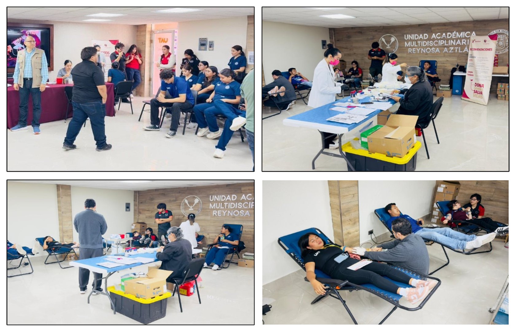 La secretaria de Salud, Adriana Marcela Hernández Campos, informó que con la participación de alumnos de la Universidad Autónoma de Tamaulipas en Reynosa, se lleva a cabo esta campaña de extracción de sangre este martes 14 y miércoles 15 de abril con la finalidad de fortalecer la capacidad y disposición de este tejido.